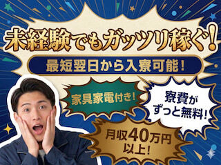 | 待遇 | 「今日・明日から働きたい」 「手持ちがなくて住まいも不安」 「未経験だけど、とにかく安定して稼ぎたい」 そんな方のための製造・工場のお仕事です! ■ 未経験でも“最短スタート”でしっかり稼げる 経験・資格は一切不要。 シンプル作業中心なので、工場デビューの方も多数活躍中です。 ・月収 35~40万円以上可能 ・深夜手当/残業手当あり ・頑張った分はそのまま給与に反映 「初月からしっかり稼げた」という声も多く、 収入を早く安定させたい方に最適です。 ■ 所持金少な目でもOK|今すぐ生活を立て直せる制度 「今すぐお金が必要…」そんな状況でも安心。 ・日払い・週払い対応(規定) ・入社日に現金支給(最大3万円)案件あり ・給与前でも生活をつなげます 手持ちがなくても、仕事も住まいも同時に確保できます。 ■ 即日入寮OK|寮費無料・家具家電付き 住まいの心配は一切不要です。 ・寮費0円~の無料寮あり ・家具・家電付き(テレビ/冷蔵庫/洗濯機など) ・カバンひとつで即入寮OK ・カップル入寮・単身寮どちらも相談可 さらに ・赴任旅費全額支給 ・赴任チケット手配 ・引っ越し費用補助 遠方からの応募でも負担ゼロで新生活スタートできます。 ■ 働きやすさ重視の職場環境 長く安心して働ける環境が整っています。 ・社会保険完備(雇用/労災/健康/厚生年金) ・交通費支給 ・研修制度あり(未経験でも安心) ・制服貸与 ・車・バイク通勤OK(無料駐車場あり) ・転勤なし ・WEB/リモート面接OK(来社不要) 「ブランクがある」「短期希望」 そんな方も歓迎です。 ■ 専任担当が入社後まで徹底サポート 応募から入社、その後のフォローまで 専任スタッフが一貫してサポートします。 ・勤務時間 ・シフト ・寮の条件 ・入社日の調整 どんな希望もまずは相談OK。 ■ まずは話を聞くだけでもOK 「すぐ働ける?」「寮はいつ入れる?」 そんな質問だけでも大丈夫です。 あなたの 「今すぐ働きたい」「安定した生活を取り戻したい」 を、全力でサポートします。 ※上記は一例です。配属先により条件は異なります。 ※各種規定あり 【社会保険】 ・厚生年金 ・健康保険 ・雇用保険 ・労災保険 【受動喫煙対策】 ・屋内原則禁煙(適用除外あり) 【社会保険】 ・厚生年金 ・健康保険 ・雇用保険 ・労災保険 【受動喫煙対策】 ・屋内喫煙可(ただし、特定の喫煙可能室または喫煙目的室のみ) |