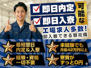 【寮費完全無料・日払い】即日勤務OK!最短翌日内定|ガッツリ稼げる軽作業【正社員】