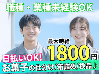 【寮完備・工場求人】お菓子をケースに入れるだけの簡単軽作業・製造補助スタッフ【アルバイト・パート】
